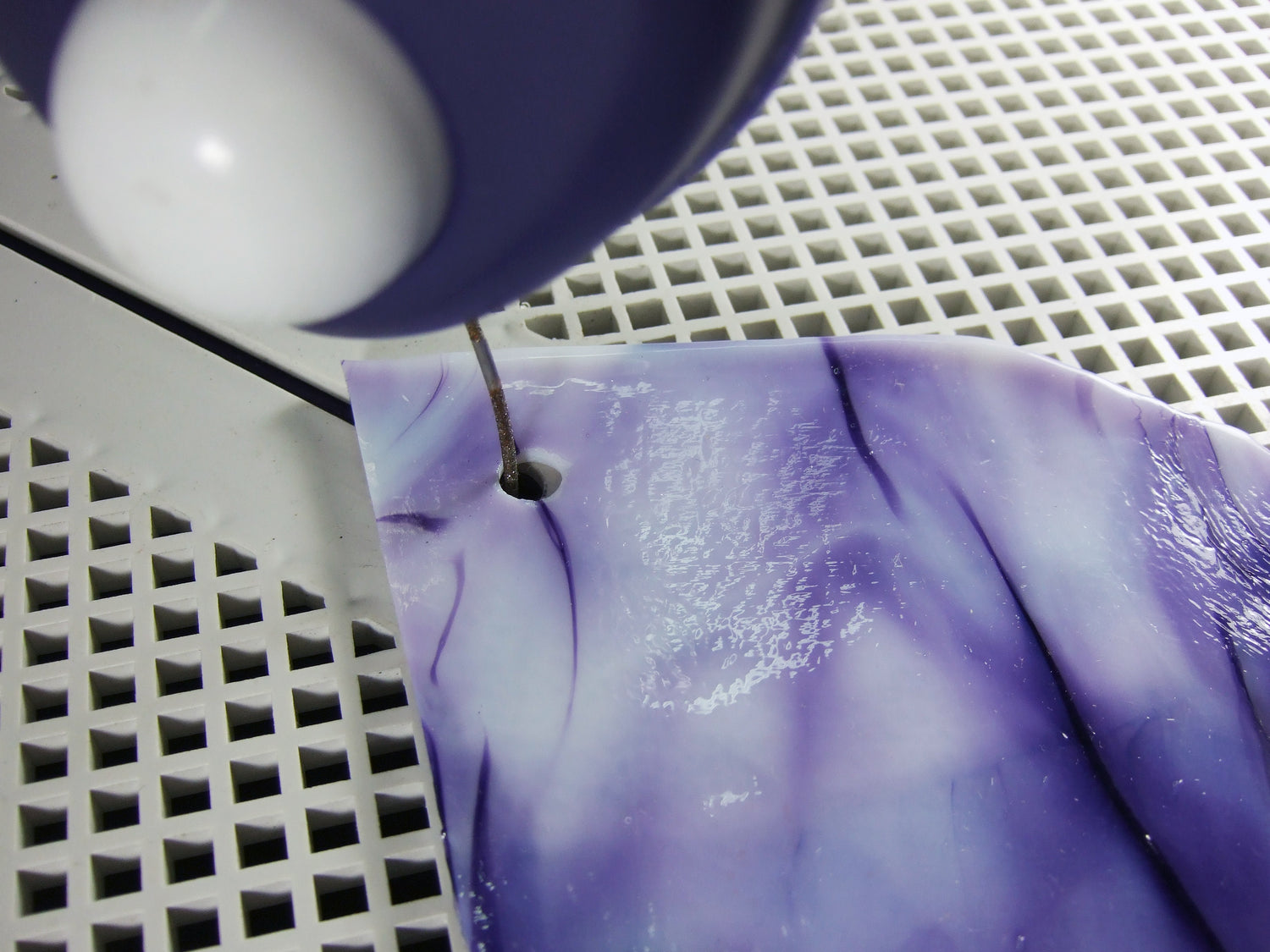 The round blade can cut in any direction, and operation is very smooth and quiet. The Zephyr saw has a large work surface that is free of obstructions. The overhead blade support is slender, allowing the artist to have a very clear view of the material as it is cut. In addition, the Zephyr has a deeper throat and more clearance for the glass than other consumer glass saws.